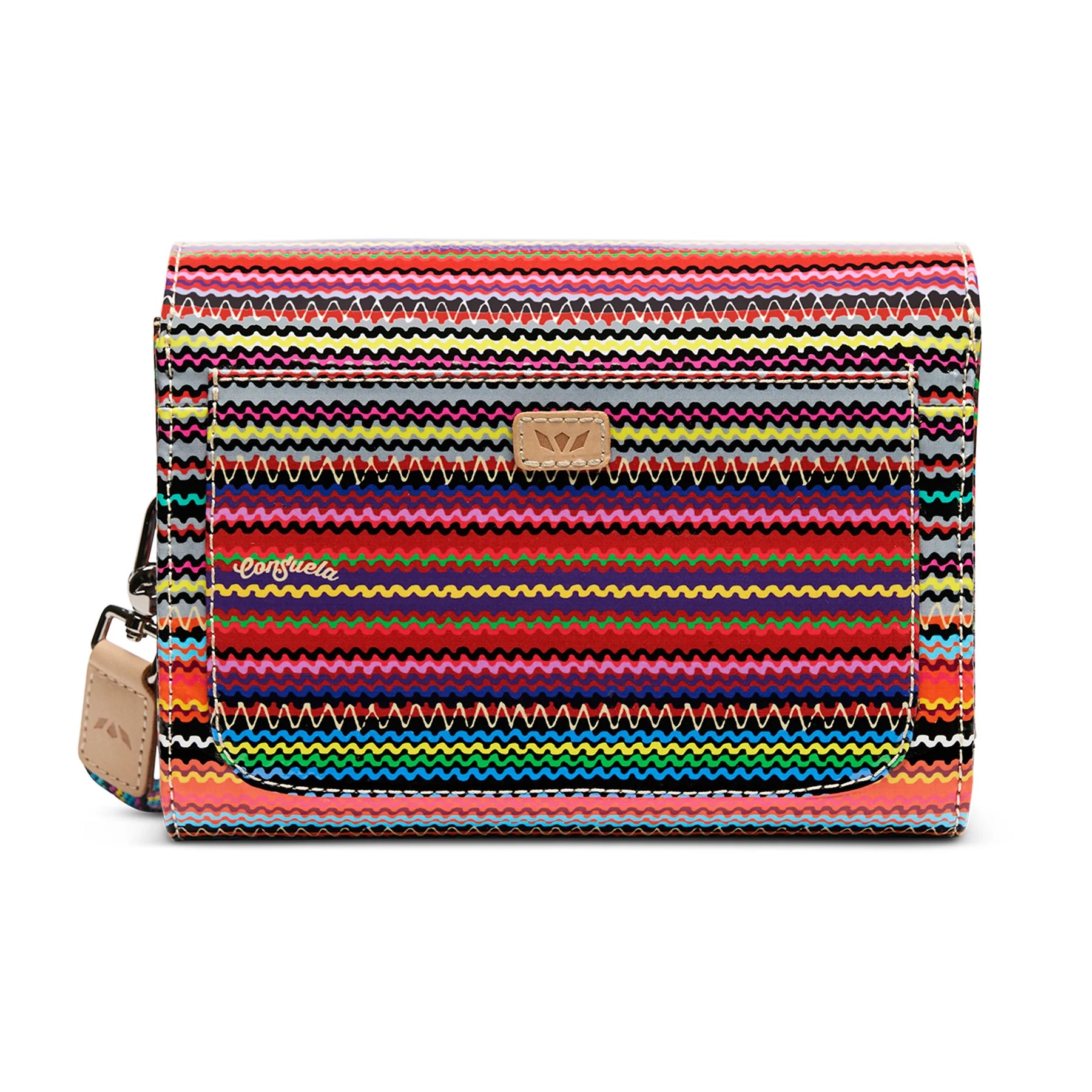- Adjustable woven crossbody strap